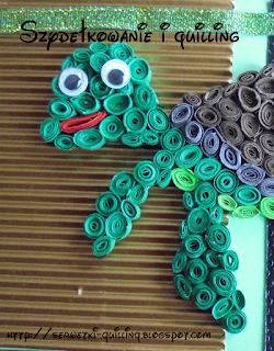 Żaba prezentująca się na kartce została wykonana z wykorzystaniem techniki quilling.
